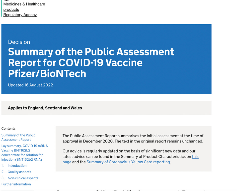 As you can see, there is a notice stating that the assessment report ‘summarises the initial assessment at the time of approval in December 2020.’ It is unusual that the MHRA inserted a notice around September 2, when it only updated the document on 16 August 2022. Could it be because of the social media storm created after this post below went viral, highlighting the contradictory advice between the NHS and the UK government’s MHRA?